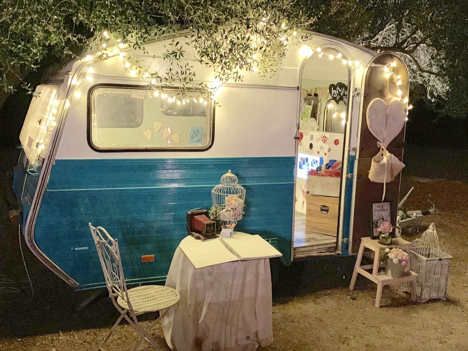 Disponemos de varias caravanas vintage para que puedas darle a tu boda, evento, fiesta un toque original y único. Puedes poner el bar dentro de ellas, el fotomatón o simplemente puedes alquilarla para decorar.
