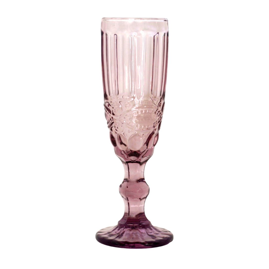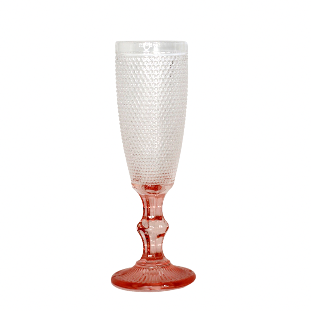 Copa de champagne de cristal tallado color rosa