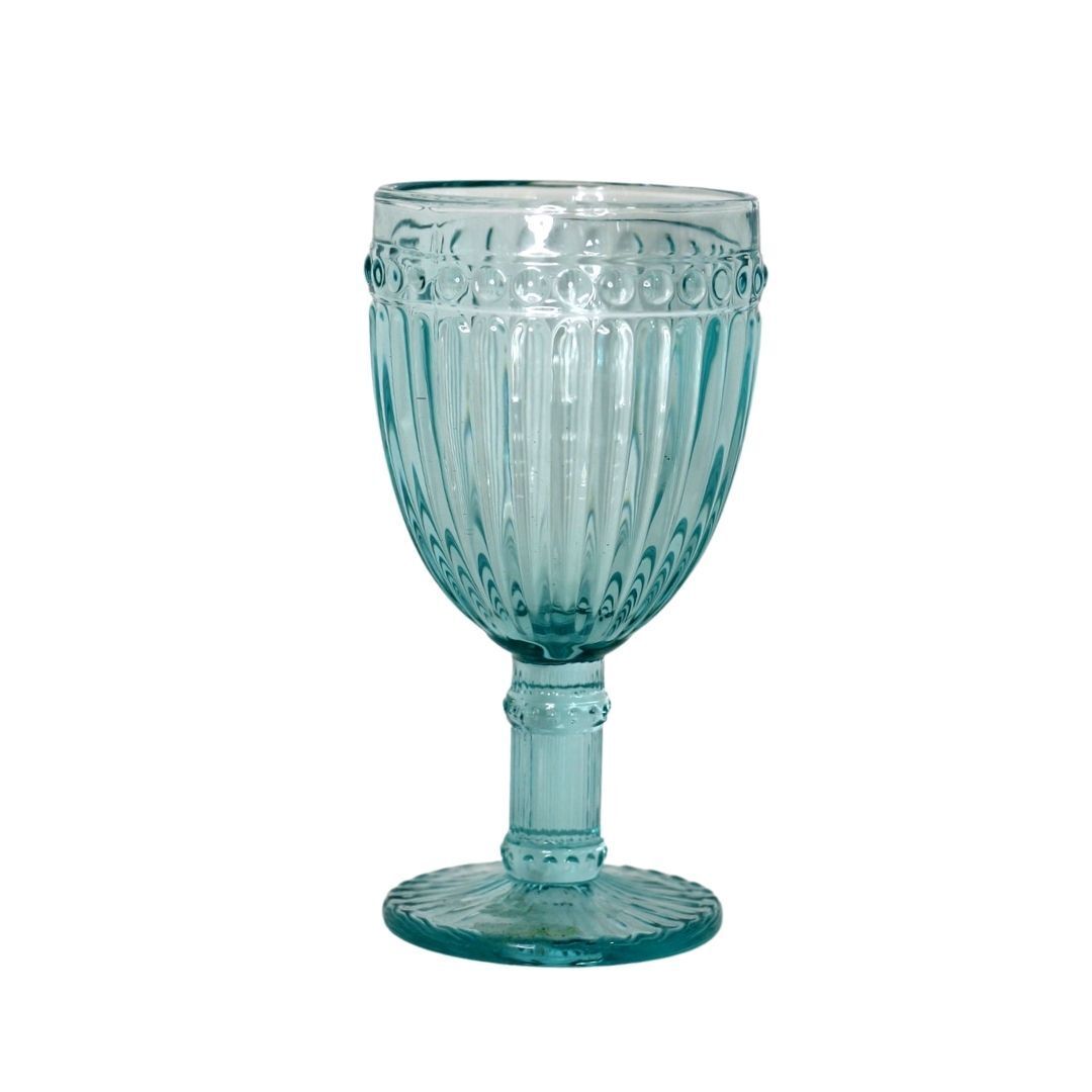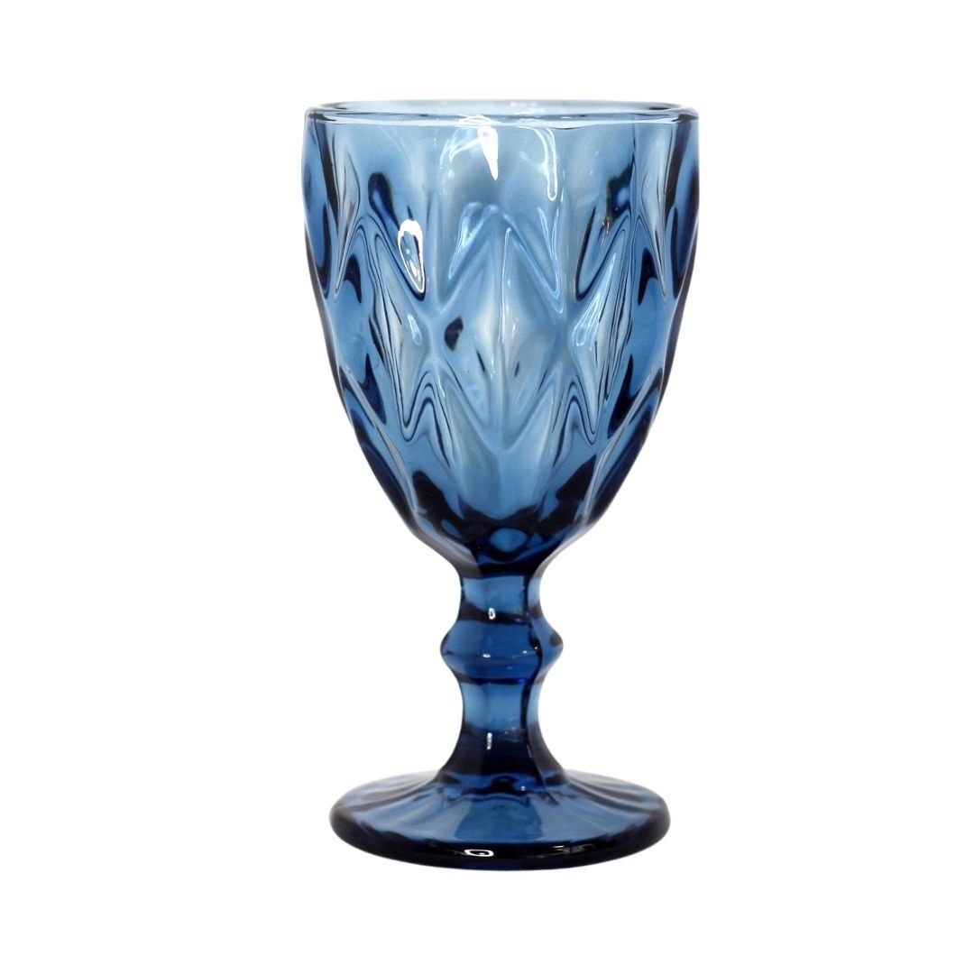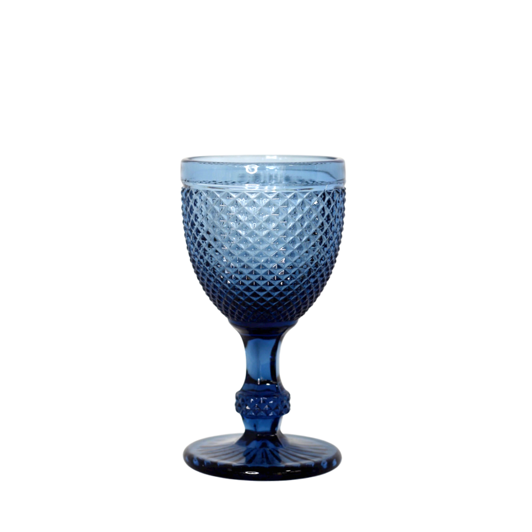 Copa de vino de cristal tallado en color azul