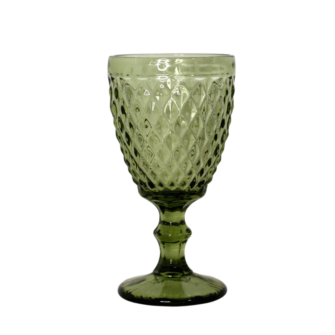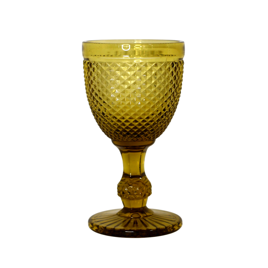 Copa de vino de cristal tallado de color ocre