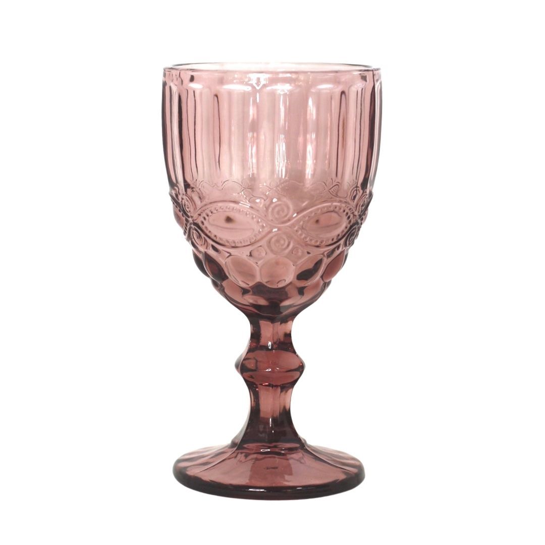 Copa de vino de cristal tallado color rosa